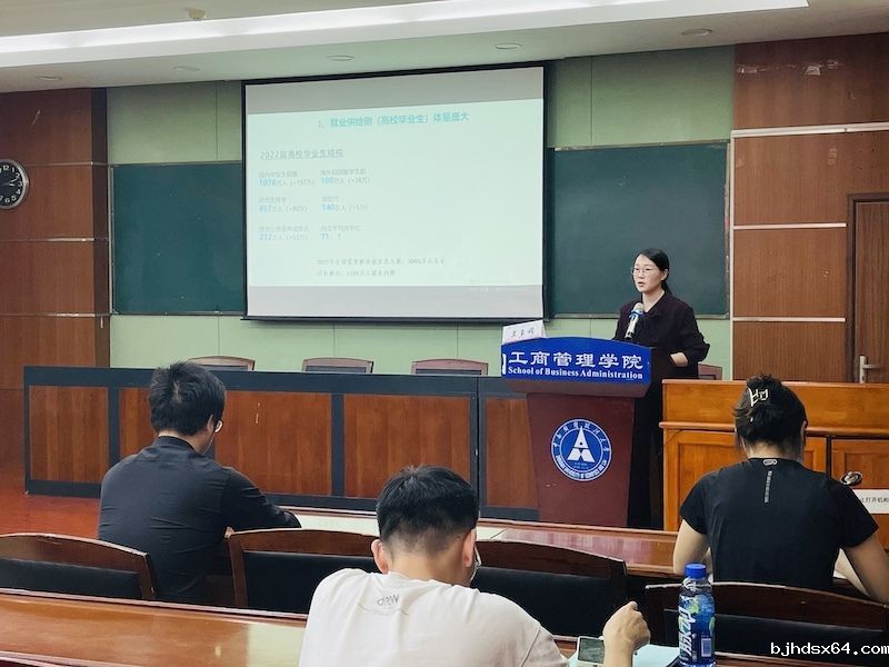 活动伊始,兰玉娟老师从目前的就业形势讲起,指出当前高校毕业生的体量庞大,而就业需求侧景气程度波动下滑,因而就业形势相对较为困难。虽然目前就业挑战很多,但依然存在许多机遇,比如:数字经济、新能源、大健康等行业的用人需求存在增长;上海、深圳、宁波等城市加大对优秀青年人才的引进力度;新就业形态和新职业拓宽就业路径,同学们可以加强对相关方面的了解并努力争取抓住这些机遇。