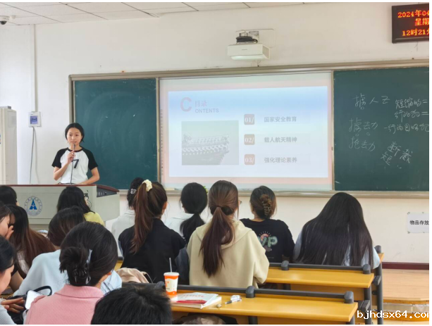 在活动中,团支书带领同学们学习了有关国家安全的知识,增强了同学们维护国家安全的意识。随后,他们了解了中国载人航天发展历程,深刻领悟了中国载人航天精神,增强了同学们的民族自豪感。