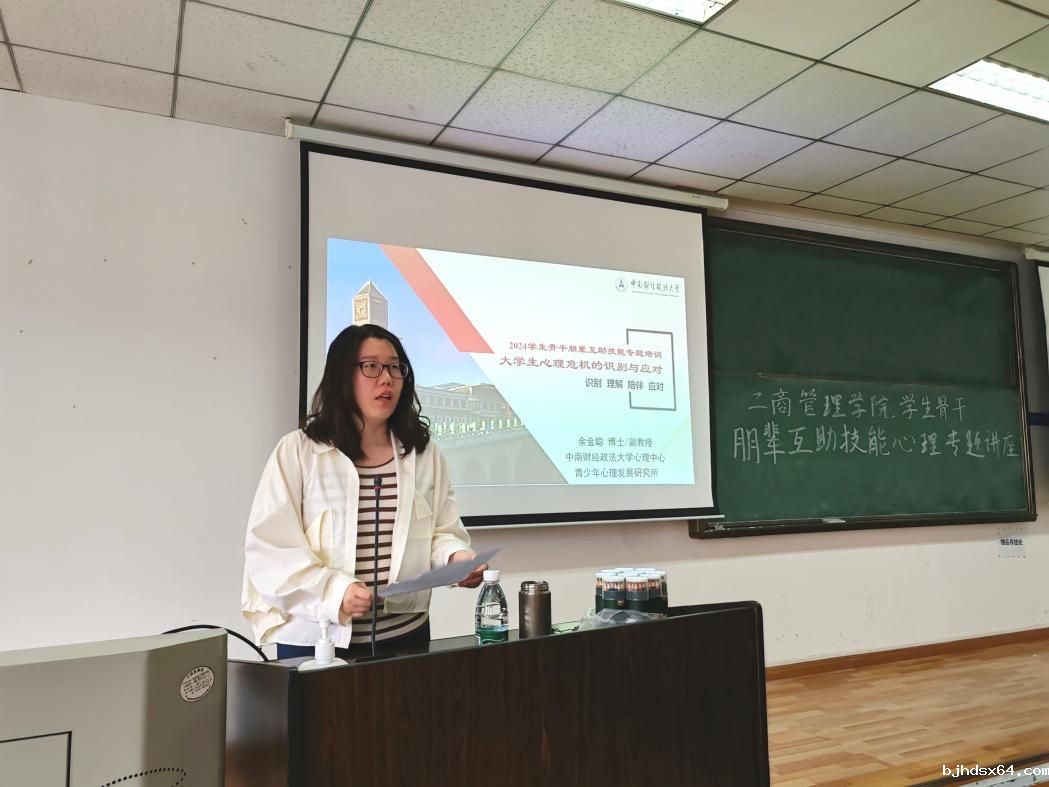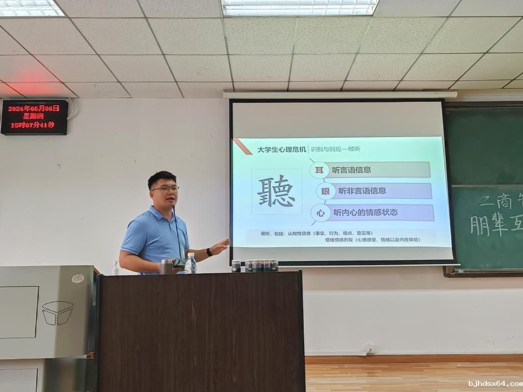(通讯员:王臻 王茹钰 摄影:冯元煦 杨雯钧)心向阳光,晴满校园。为更好发挥学校四级心理预警机制,构建上下联动、高效衔接的心理健康教育工作格局,波胆app下载于6月6日在文润303教室举办朋辈互助心理技能专题讲座。本次讲座邀请我校心理中心青少年心理发展研究所专职教师、国家二级心理咨询师余金聪老师主讲,由波胆app下载本科2020级辅导员范梦宇老师主持,波胆app下载本科2023级全体班委及寝室长参加。