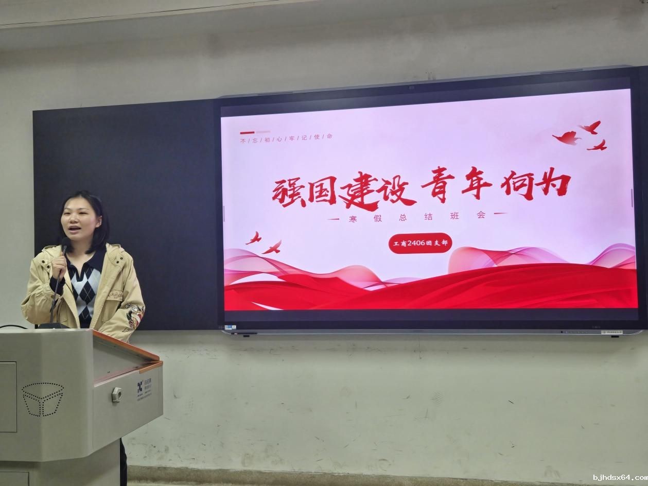 (通讯员 李亭逸)春华初绽,万象更新,新学期携盎然生机翩然而至。工商2406班全体成员于2024年3月21日晚上在文津305教室举行“强国建设,青年何为”主题班会。本次活动由班长张福麟主持,辅导员潘俊颐莅临现场。同学们上台分享大一上学期收获、寒假见闻及下学期展望,彰显了新学期里锐意进取的班级新风貌。