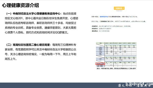 针对研二学生普遍面临的心理压力,班会系统介绍了校内外心理支持资源。徐一菱详细说明:校内可通过文沁楼201室心理咨询中心预约免费服务,专业团队严守保密原则;校医院每周一、三、五上午安排精神科专家坐诊,学生可通过公众号查询排班。她同时警示近期高发的六类电信诈骗,如冒充公检法、虚假征信、演唱会门票骗局等,强调“不轻信陌生来电、不开启屏幕共享、不泄露验证码”的三不原则,并提醒遭遇诈骗第一时间联系保卫处。