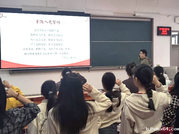 第二环节,由支部书记南天亮老师带领,全体支部委员紧握右拳,面对党旗重温入党誓词,以铮铮誓言回溯初心,更加坚定理想信念。