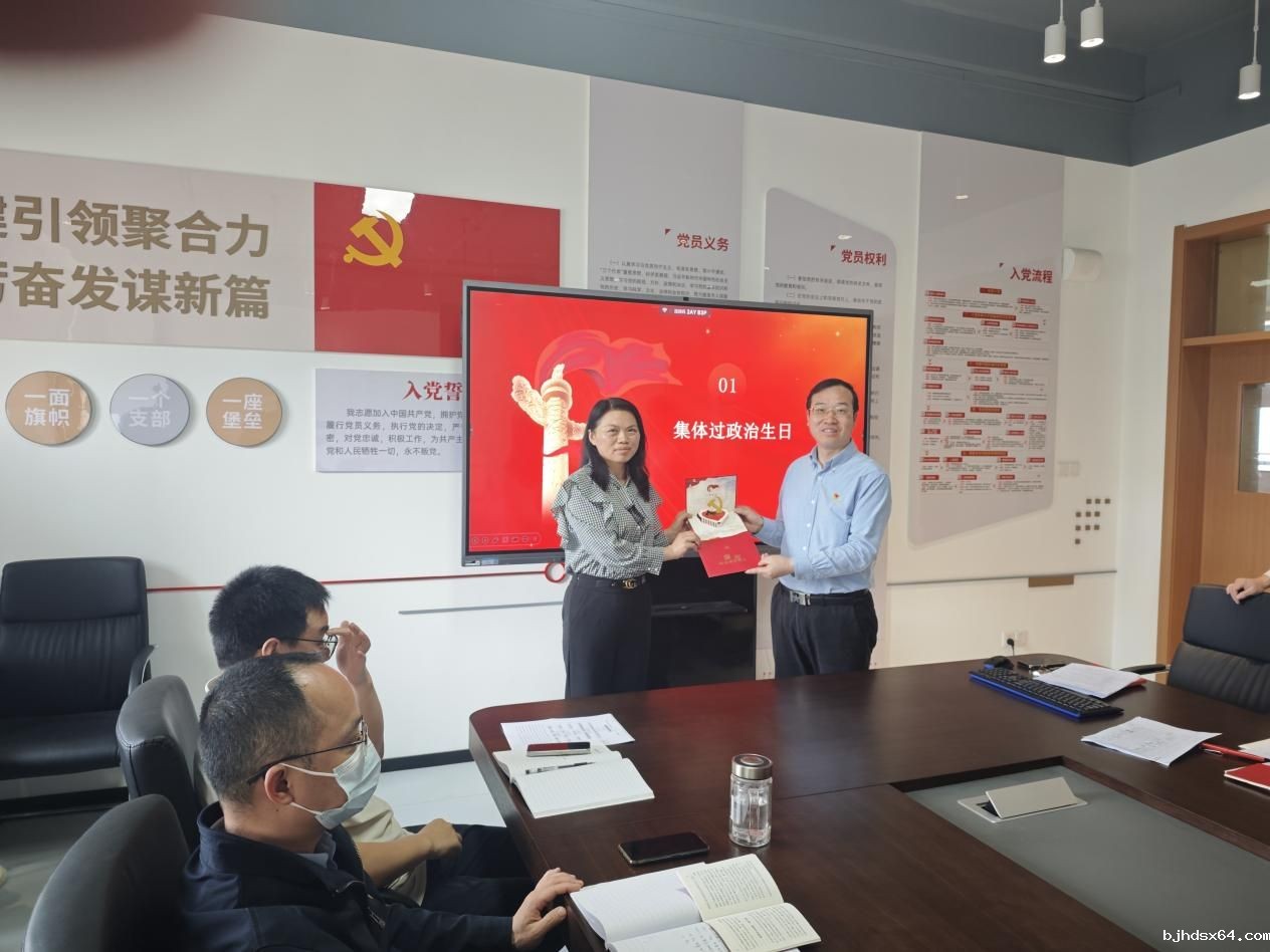 首先,全体党员在支部书记曾紫荣同志的带领下重温入党誓词。由朱汉彬同志带领集体学习《中国共产党章程》。主题党日活动中,院党委书记余小朋为熊双同志赠送政治生日贺卡,为她庆祝政治生日。