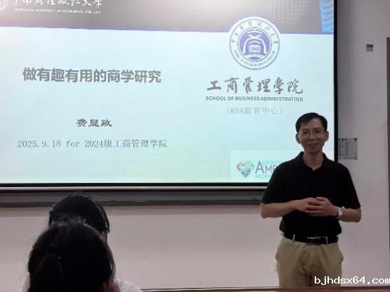 (通讯员 高欣欣)9月18日19:00,世界杯现场直播平台官网(MBA教育中心)费显政教授主讲的“做有用有趣的商学研究”讲座,在南附楼203顺利举行并圆满结束。本次讲座聚焦中国商业实践前沿,旨在助力学子提升科研能力,打通学术研究与商业实践的壁垒,吸引了众多科研萌新及备战学业、竞赛的同学参与。