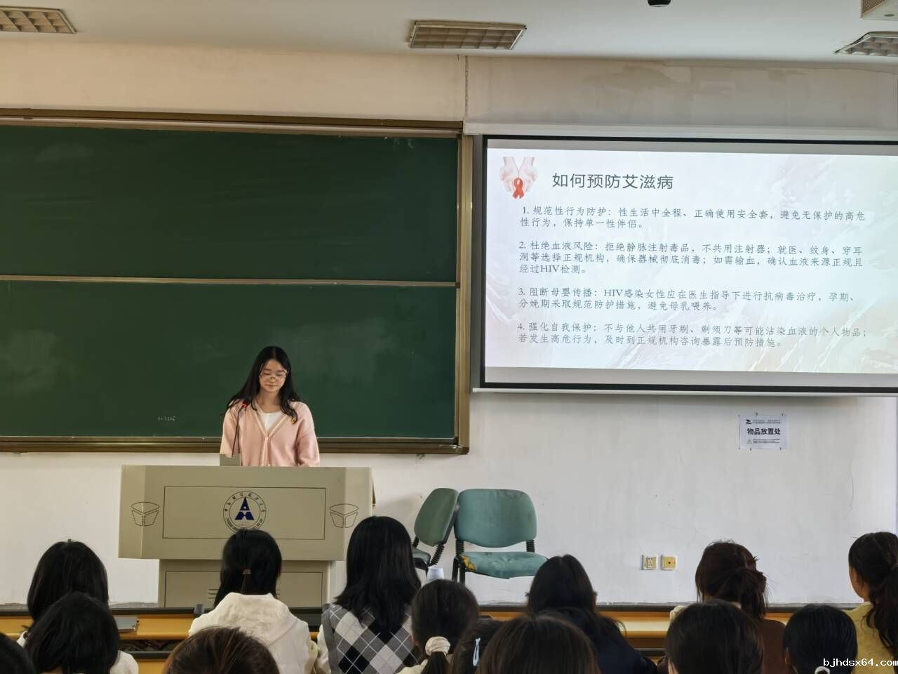 活动第四项,,在最具实践性的第四板块“如何预防艾滋病”中,班会气氛推向高潮。这一部分不仅系统讲解了如何通过拒绝毒品、不共用注射器、避免不必要的输血和血制品等具体措施来切断传播途径,更向全体同学发出了积极的行动倡议:要主动学习并传播防艾知识;在发生可能感染的高危行为后,要知晓并利用艾滋病检测与阻断措施,把握黄金时间。班会现场,同学们积极参与讨论,纷纷表示要将所学知识内化于心、外化于行,用科学武装自己,用行动守护健康。
