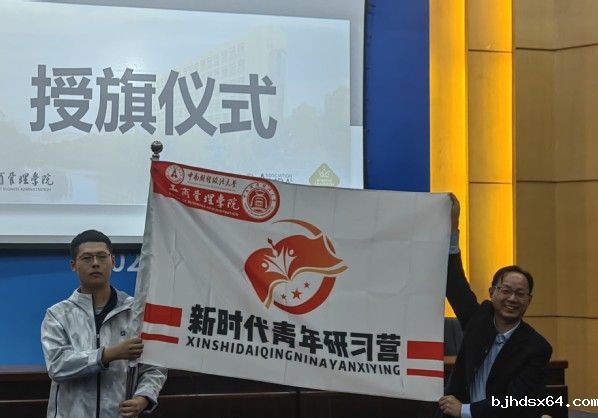 Afterwards, a flag awarding ceremony was held for the Study Camp for Youth in the New Era, in which Dean Qian Xuefeng awarded the flag to the Camp and Li Shanghao, a undergraduate representative of Grade 2022, a student from Class 2206 of the SBA received the flag. The SBA has insisted on the development of the work led by the Party building, and built the Study Camp for Youth in the New Era for freshmen. The School has also carried out various forms of learning and practical activities with the purpose of “learning to thinking, thinking to understanding, understanding to practicing”, relying on several platforms to strengthen their ideals and beliefs, consolidate professional knowledge and enhance comprehensive ability.
