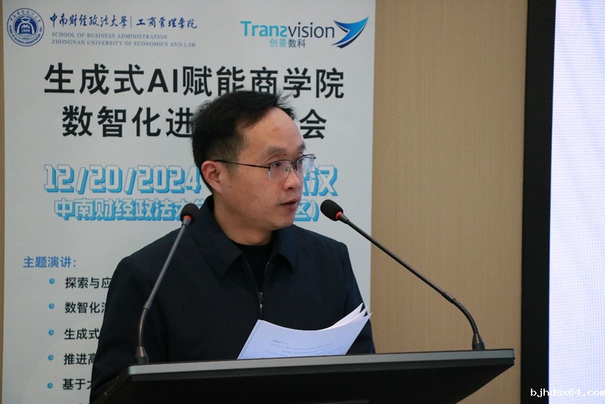 On 20th December 2024, the seminar titled "Application of Artificial Intelligence to Empower the Digitalization of Business Schools," hosted by the School of Business Administration(SBA) of Zhongnan University of Economics and Law(ZUEL) and co-organized by Beijing Chuangjing Digital Information Technology Co., Ltd., was successfully held in the East Conference Hall 718 of Wenhan Building, Nanhu Campus.